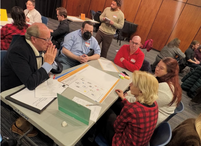 John Fry, AIA, Senator Shelley B. Mayer and community members at a breakout table
